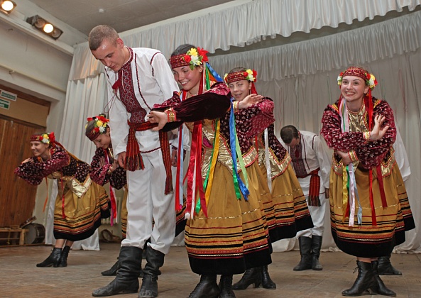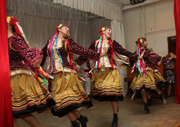 Коллектив народного танца "Юный металлург" (ЛНР) на сцене степановского Дома культуры