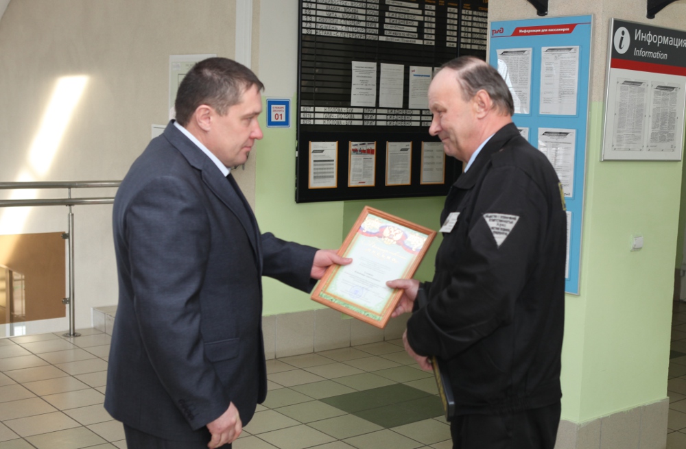 Благодарность Владимиру Анатольевичу Туманову и Александру Михайловичу Шебалину в присутствии коллег вручил начальник Костромского линейного отдела полковник полиции Дмитрий Михайлович Табелев.