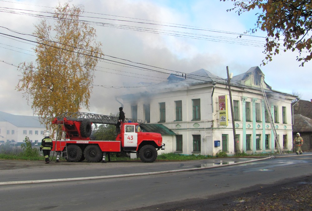 К шести часам утра пожарным удалось справиться с огнем, но работа на месте пожара продолжается и с наступлением дня: в здании, где много старых деревянных перекрытий, сохраняются очаги задымления, которые и ликвидируют галичские пожарные.