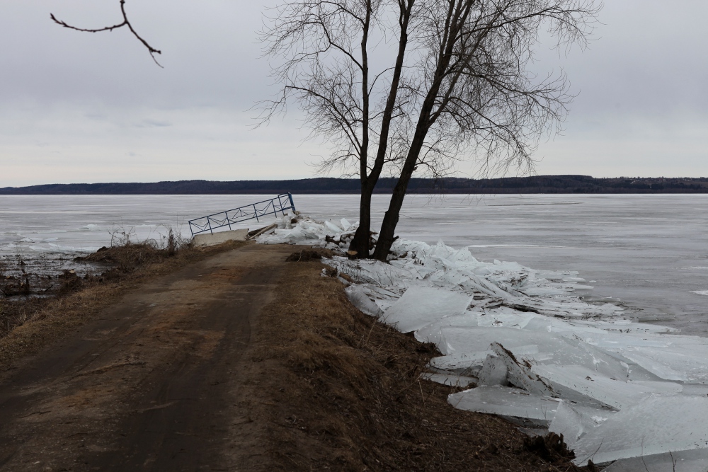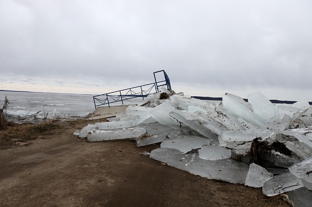 Одной из первых пострадала пристань, которую в прошлом году только начали приводить в порядок: бетонные плиты и железное ограждение буквально подняло льдинами.