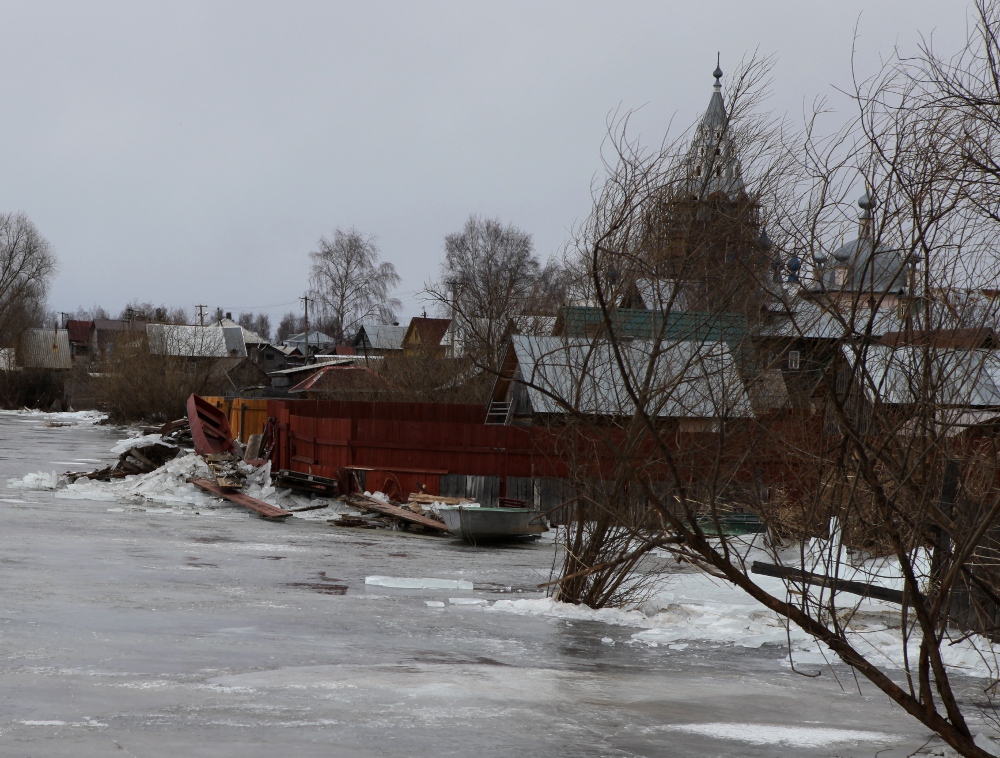 Сильные холодные ветра смогли сдвинуть лёд рано, ледяные торосы острыми краями врезались в берег, повредив лодки и угрожая постройкам.