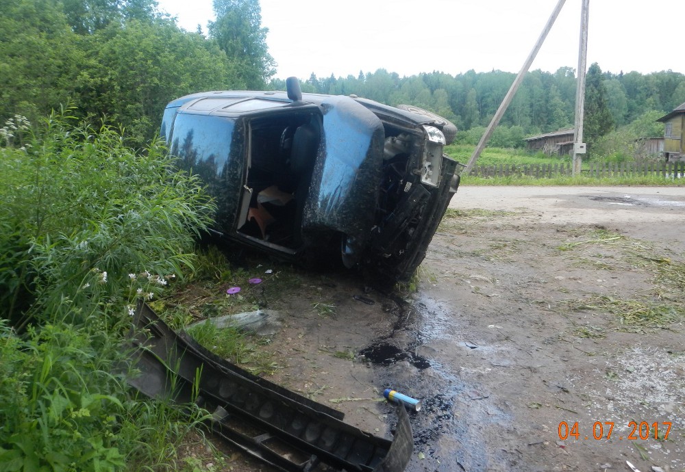 Ночью 3 июля в селе Берёзовец произошло дорожно-транспортное происшествие. Водитель автомашины ВАЗ-21100 не справился с управлением на деревенском повороте. Машина съехала на обочину и перевернулась.