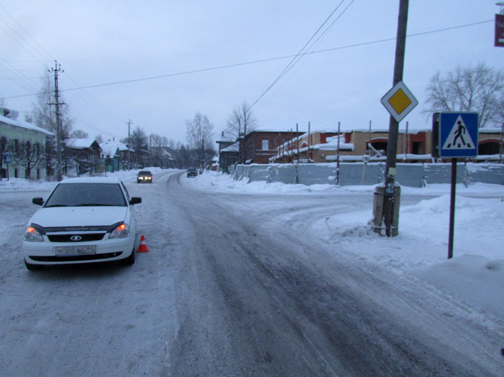 Дорожно-транспортное происшествие произошло в 8 утра в четверг 15 декабря. Женщина переходила дорогу по нерегулируемому переходу на пересечении улиц Ленина и Клары Цеткин. В привычной утренней спешке она вступила на проезжую часть, не посмотрев по сторонам, совершенно уверенная в своей безопасности: знак пешеходного перехода однозначно указывал, кто кому должен уступить дорогу. Однако коварное зимнее полотно внесло свои коррективы в отношения водитель-пешеход. Ехавший в сторону центра города мужчина увидел женщину на переходе, но скорость движения была такова, что он не смог удержать свой автомобиль «Лада Приора» от столкновения на скользкой дороге.