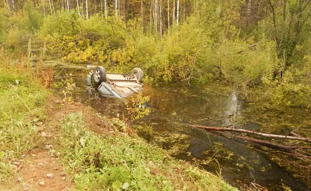 В результате ДТП машина оказалась перевернутой в воде и водитель был заблокирован в машине.