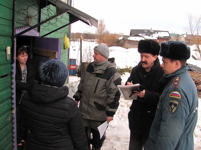 Члены КЧС Алексей Карамышев, Наталья Орлова, Евгений Гайдукевич и начальник территориального отдела Пожнадзора Дмитрий Сенников побывали в домах, попавших в зону риска, раздали жителям памятки о том, как действовать в случае поступления большой воды в дома, и куда обращаться за срочной помощью.