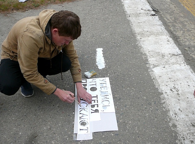 Перед пешеходными переходами, расположенными вблизи школ и детских садов, ребята нанесли предупреждающую надпись "УБЕДИСЬ, ЧТО ТЕБЯ ПРОПУСКАЮТ".