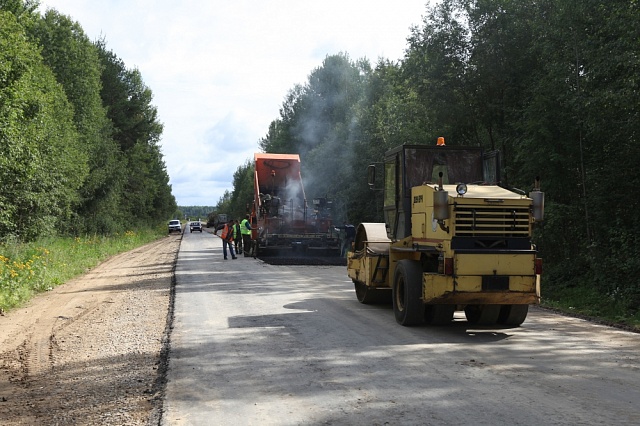 Дорожникам оставалось в этом году выполнить двуслойное асфальтирование участка. Однако, прибыв на объект, специалисты с неудовольствием обнаружили не только вздутие полотна от воды в нескольких местах, но и значительное проседание участка под воздействием большегрузов. Заново отсыпать участок гравием, восстанавливать сделанное ещё прошлой осенью приходится в очень непростых погодных условиях. Используя сухие дни, дорожники выполняют сейчас работы в самых сложных местах, восстанавливая основание и укладывая асфальт первым слоем. Пять сантиметров - такой высоты асфальт уже уложен как раз возле источника на Котеле, выполнено асфальтирование в один слой и участка на территории Буйского района.