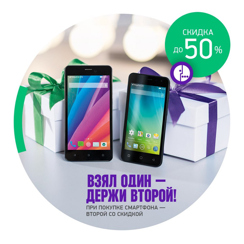 С 10.02.2017 по19.03.2017 при покупке смартфона в салонах МегаФона скидка до 50% на второй! Подробности по ссылке: https://goo.gl/cKgSwl