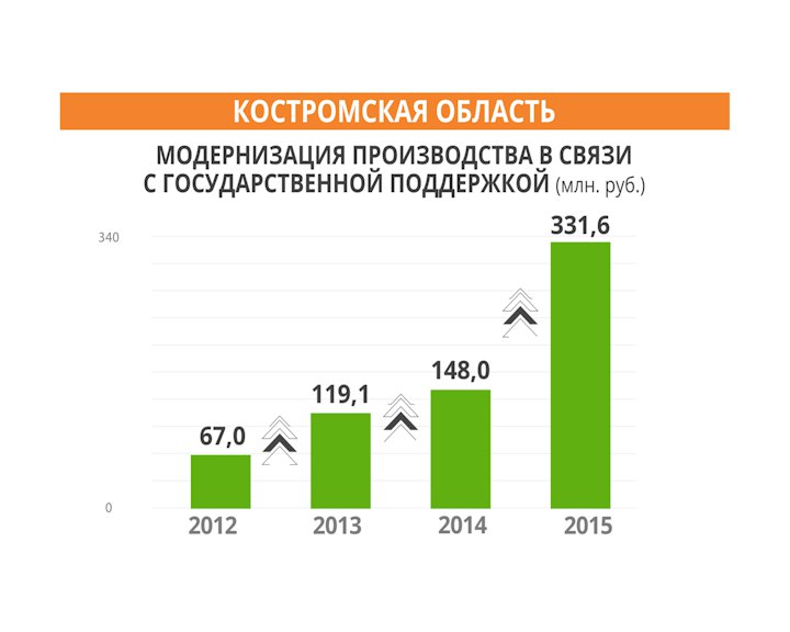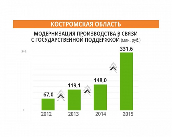 В Костромской области за четыре года количество государственных средств, выделенных на модернизацию производства, увеличилось в пять раз.