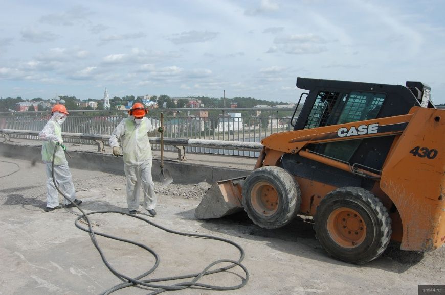 В настоящее время продолжается работа с выравнивающим слоем верховой части моста, а также ремонт опорных пролётных строений подмостового пространства - сообщает информационный портал СМИ44.