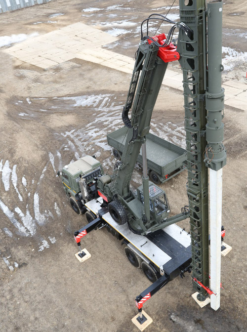 В этом году такой новинкой стала новая разработка завода - универсальный сваебойный агрегат на базе автомобильного крана КС-55729-5М, грузоподъемностью 32 тонны, на шасси КАМАЗ-6560 с колесной формулой 8х8.