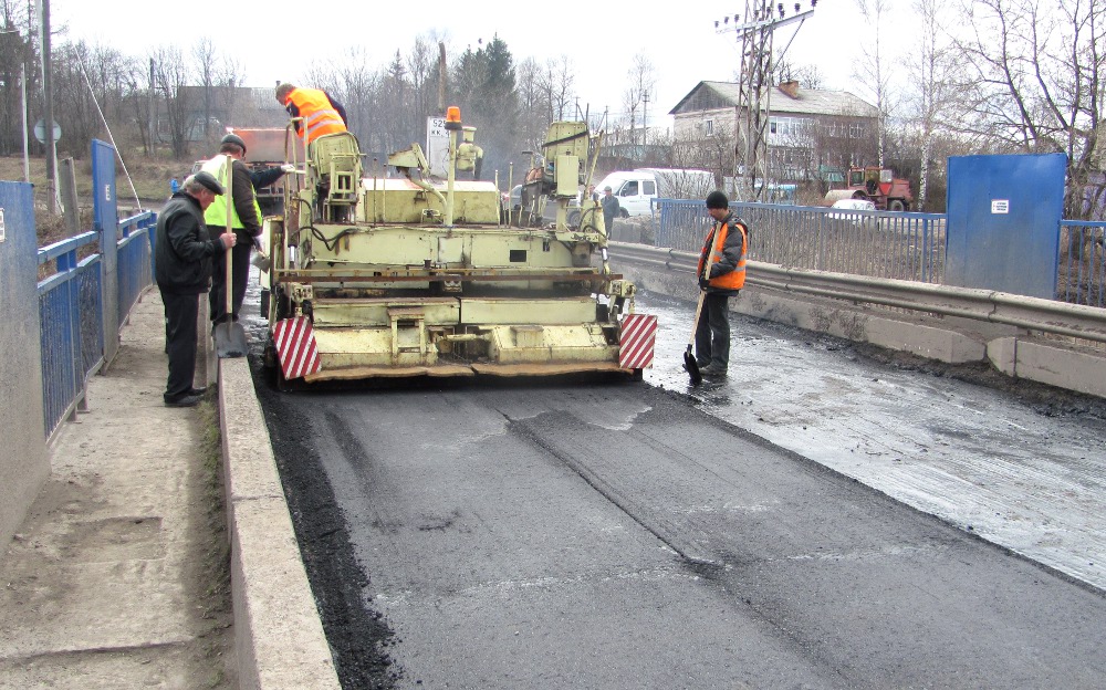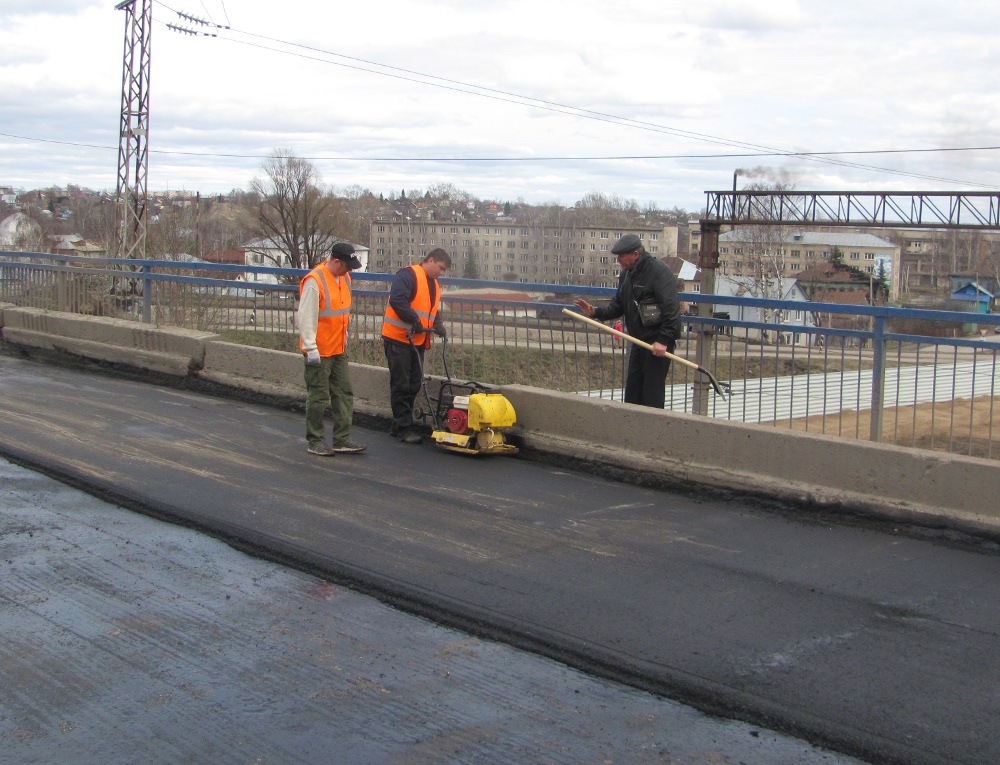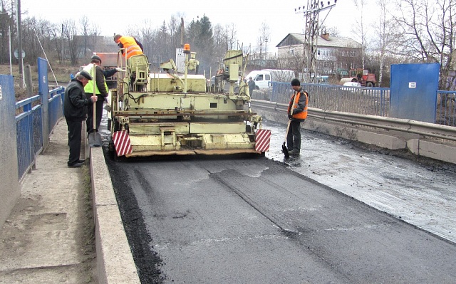 Вечером мост открыли для проезда, а с утра во вторник дополнительно провели расчистку полотна. Одни дорожники сменили других. Уже наши кладут на мосту новый асфальт, также сохраняя заданный фрезой уклон.