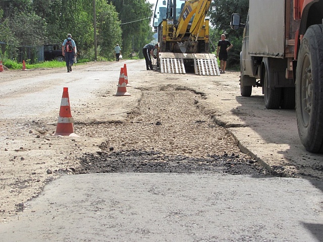 В настоящее время одна из подрядных организаций продолжает работы в Шокше: восстанавливают асфальтовое покрытие на улицах Рабочей и 1 Мая.