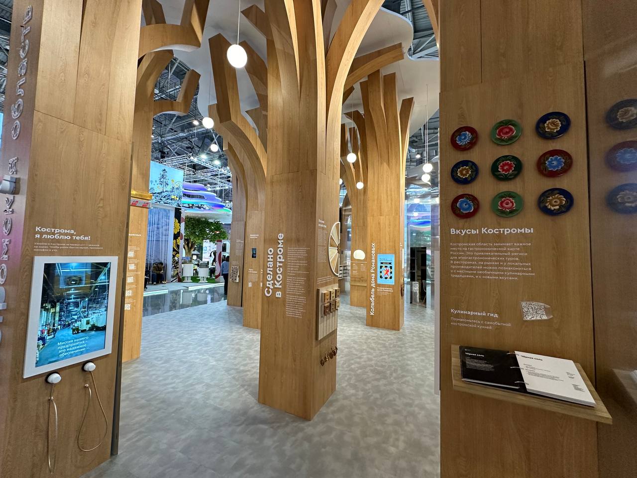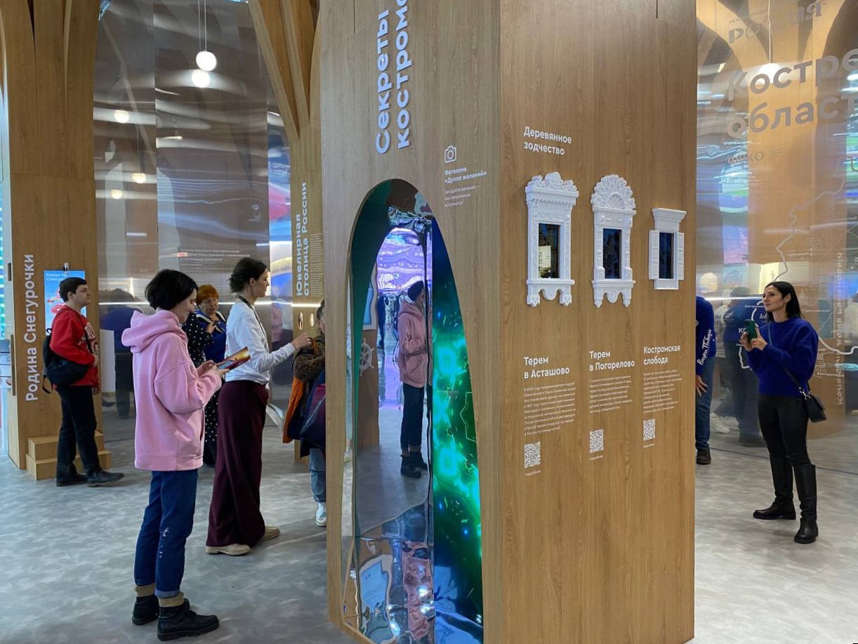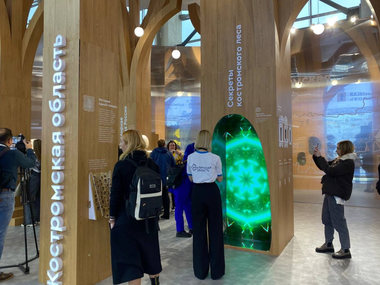 Костромской стенд на выставке представлен в виде Леса – как символа главного богатства края. С помощью встроенных цифровых экранов и тач-панелей величественные деревья рассказывают об истории, культуре и традициях области, презентуют промышленныйпотенциал региона и показывают главные достижения в современной экономике. За первые часы выставки стенд региона уже посетили тысячи гостей.