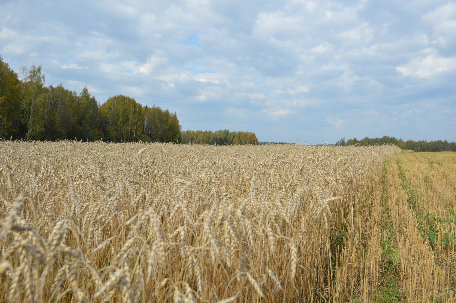 (Убрано зерновых по области — 27295 га, 87,1%).