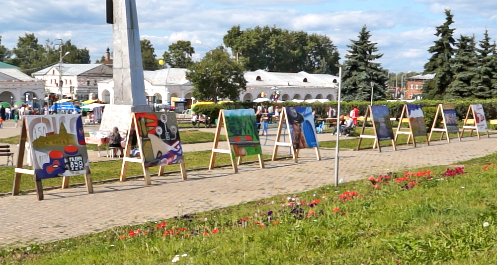 В то время, когда на сцене начиналось главное действие праздника - выступление народных коллективов-участников фестиваля «Наши Древние столицы» - у стелы разворачивала свою работу творческая мастерская поп-Арта.