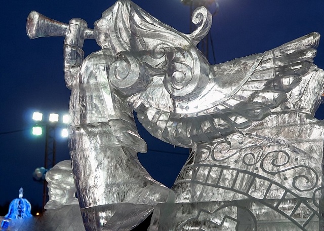 Работа Юрия и Сергея Князева была создана по мотивам фильма мастера «Андрей Рублев», посвященного жизни и таланту легендарного русского иконописца. Сюжетными и символическими центрами масштабной и в то же время легкой, словно гонимой ветром ледяной композиции стали устремленный в небеса архангел, фигура самого Рублева и колокол как символ веры, которую он нес людям своими творениями.