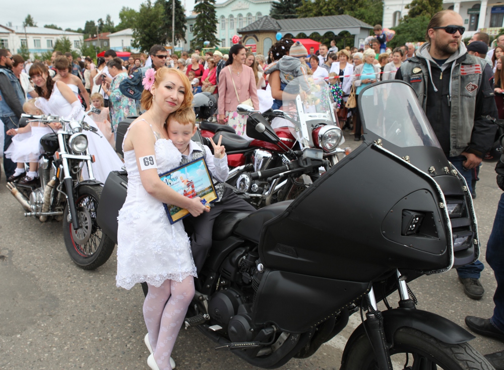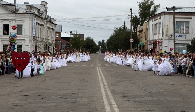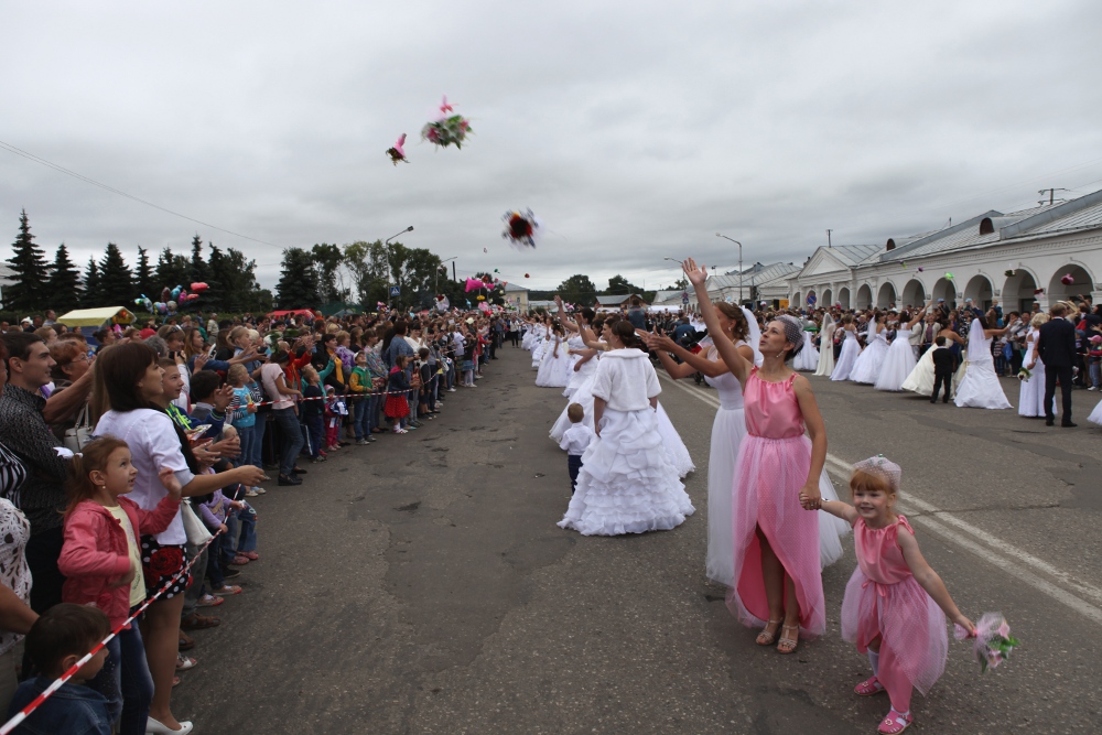 Галичане вздрогнули и… тут же ахнули, потому что следом за ними белоснежной рекой на площадь вплыли красавицы в свадебных платьях. Первый в истории города Парад невест, организованный нашей газетой, собрал больше сотни (если быть точным 109!) участниц, многие из которых пришли на торжество в сопровождении нарядных пажей (сыновей, племянников, крестников и просто соседских мальчишек), которые, несмотря на свой очень юный возраст, сопровождали своих «королев» со всей серьезностью и ответственностью взрослых кавалеров.