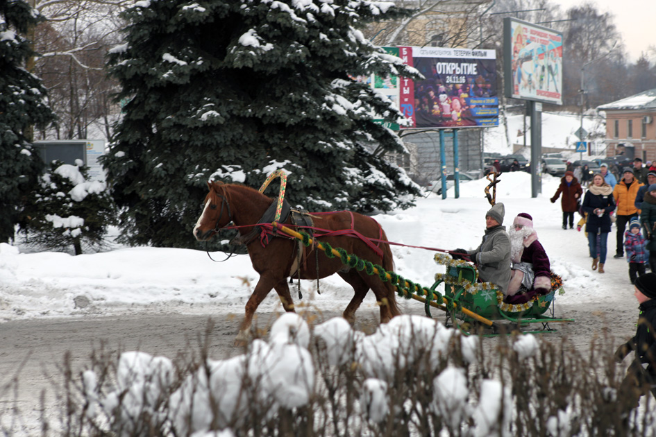 Главного героя Новогодних праздников встретили галичане в субботу, 24 декабря. Малышей и взрослых на площади развлекали Емеля, Снегурочка и их помощники. Хорошее настроение обеспечили весёлыми конкурсами, играми, хороводами вокруг красавицы елки. Румяная малышня не сразу и заметила, что на настоящих санях, запряжённых настоящей лошадкой, к ним приехал Дедушка Мороз.