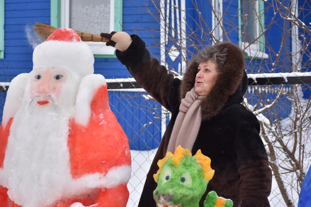 Уже много лет, каждую зиму наша землячка из Толтунова не перестает удивлять всю округу своими снежными фантазиями, воплощенными в мифических животных – символов наступающего года, традиционных Деда Мороза и Снегурочку, новогоднюю елку и забавных лесных зверушек. Елена Константиновна Рыжкова, автор скульптур из снега и льда, сейчас проживает в далекой Юрге Кемеровской области, но регулярно навещает малую родину, отчий дом. Идея украшать таким способом придомовую территорию пришла сама собой, очень хотелось удивить и порадовать пожилую маму героями из сказок, которые задорно выглядывали из сугроба. (Мать Елены всю жизнь проработала в деревенской библиотеке). Несколько лет назад матери не стало, но традиция осталась. И теперь снежные изваяния стали своеобразным брендом деревни. Рядом с ухоженным деревенским домом, посреди огромных белоснежных сугробов, как оазис в пустыне вдруг открывается и радует глаз разноцветная лесная полянка. Работа по созданию подобной красоты кропотлива, занимает от нескольких дней до месяца, но результат того стоит! Полюбоваться и сфотографироваться на фоне снежных скульптур в Толтуново приезжают галичане и гости из других городов.
