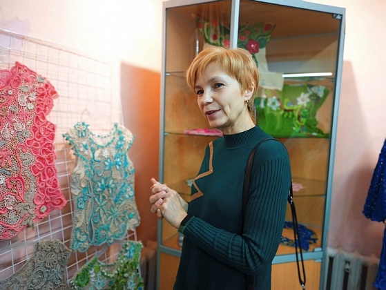 Елена Ясакова рассказала собравшимся об искусстве создания ирландского кружева. Как следует из названия, эта техника впервые появилась в Ирландии. Полотно собирается из связанных крючком элементов, чаще всего растительного характера. Классическое кружево – льняного цвета, но современные мастерицы часто выбирают для своих изделий необычные яркие оттенки.