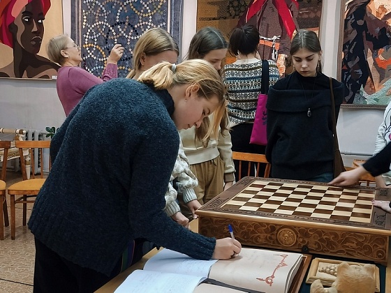 На втором этаже музея – экспозиция резных изделий из дерева и масштабных картин в технике лоскутного шитья.