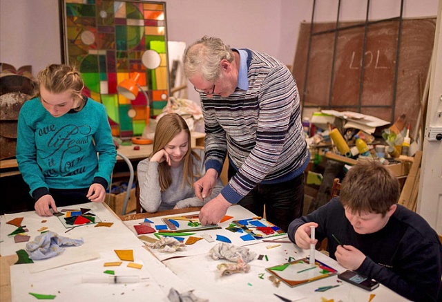 Ученики Галичской художественной школы получили урок по искусству витража у настоящего мастера.