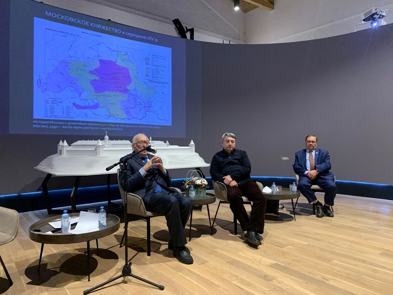 На встрече прозвучали доклады о летописных источниках биографии Юрия Дмитриевича, об уникальных архитектурных памятниках, появившихся при непосредственной поддержке князя, об особенностях исторической эпохи Средневековой Руси. Одним из спикеров, приглашенных в этот день в Звенигород, стал Владимир Андреевич Кучкин, доктор исторических наук, один из самых авторитетных исследователей Московской Руси.