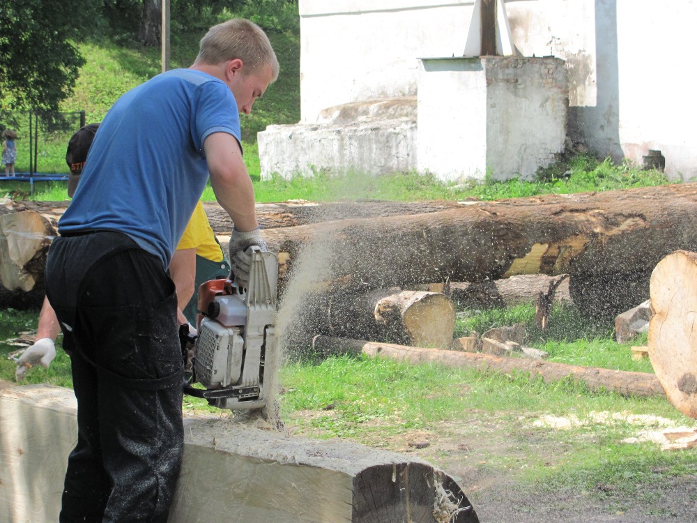 Ну, поехали! Звонко застучали топоры, пронзительно «заревели» пилы, веером полетели в разные стороны опилки, запахло свежими свежеспиленной древесиной и сизым бензиновым дымом – фестиваль «Рыбная слобода» стартовал.