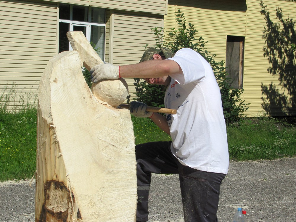 К утру четверга стал известен уточненный состав участников фестиваля: костромская команда и один из галичских дуэтов не смогли принять участие в состязаниях, поэтому в итоговом списке – девять команд. Уже сейчас видно, что борьба за обладание главным призом – чудо-пилой от компании STIHL – предстоит серьезная: мастера работают в полную силу, так, что только стружки летят!