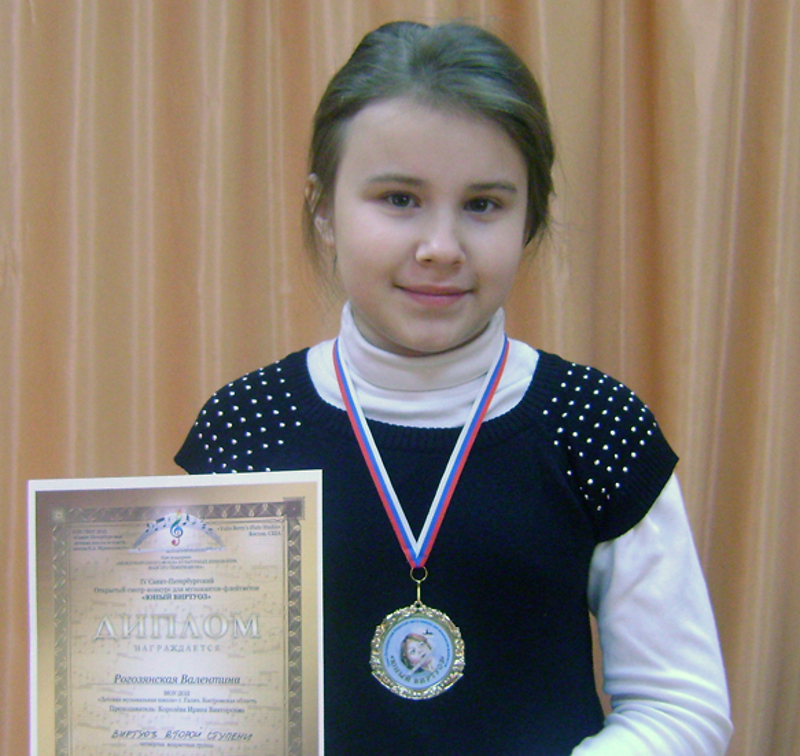 Учащаяся по классу флейты нашей музыкальной школы Валентина Рогозянская стала Лауреатом II cтепени (класс преподавателя И.В. Королевой, концертмейстер В.Е. Елшина).