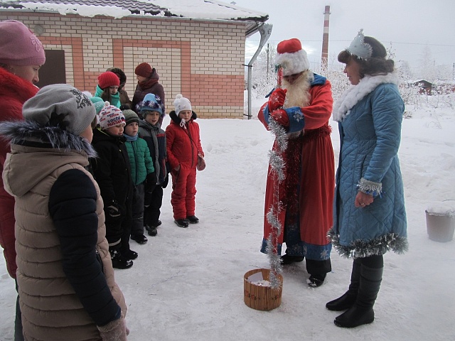 Напоследок, Дед Мороз подарил всем детям конфеты, которые вместе со Снегурочкой были сварены в волшебном котле. Вообще волшебство было повсюду, даже погода постаралась создать неповторимый пейзаж из удивительно украшенных снегом берёз и чайных кустиков. Лёгкий снежок ложился ровным ковром на ещё вчера растаявшие сугробы прошлогоднего снега. С Новым годом, друзья! Пусть удача во всём вам сопутствует!