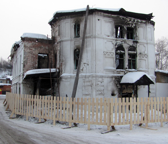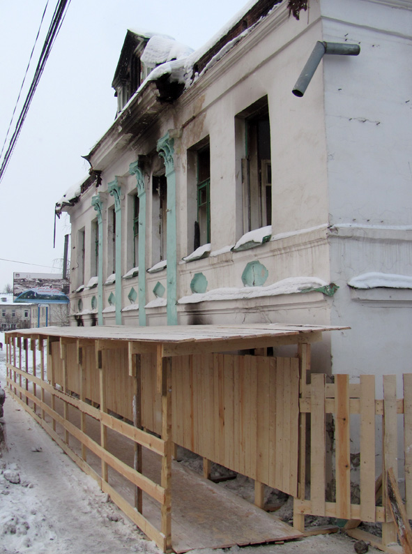Несколько месяцев дом стоял в том плачевном виде, что оставил после себя огонь, и это усилило у галичан ощущение брошенности дома с мезонином на произвол судьбы. Но в феврале вокруг здания появился забор, а на тротуаре перед поврежденным фасадом - безопасный проход с навесом.