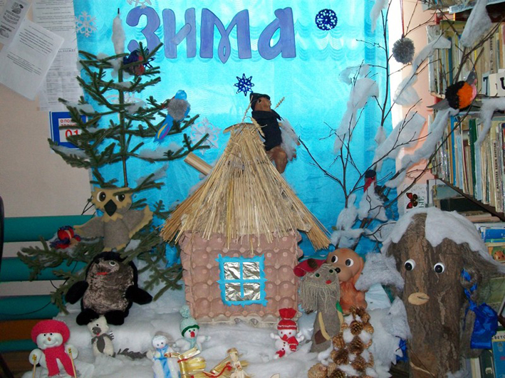 В создании уголка активное участие принимали читатели библиотеки, как взрослые, так и дети. Это Юлия Геннадьевна Корсакова, Ольга Сергеевна Муравьева, Наталья Александровна Королькова и участники клуба «Рукодельница». Дети мастерили птиц – сову и снегирей, а библиотекарь оформила книжный просмотр «Птичье царство».