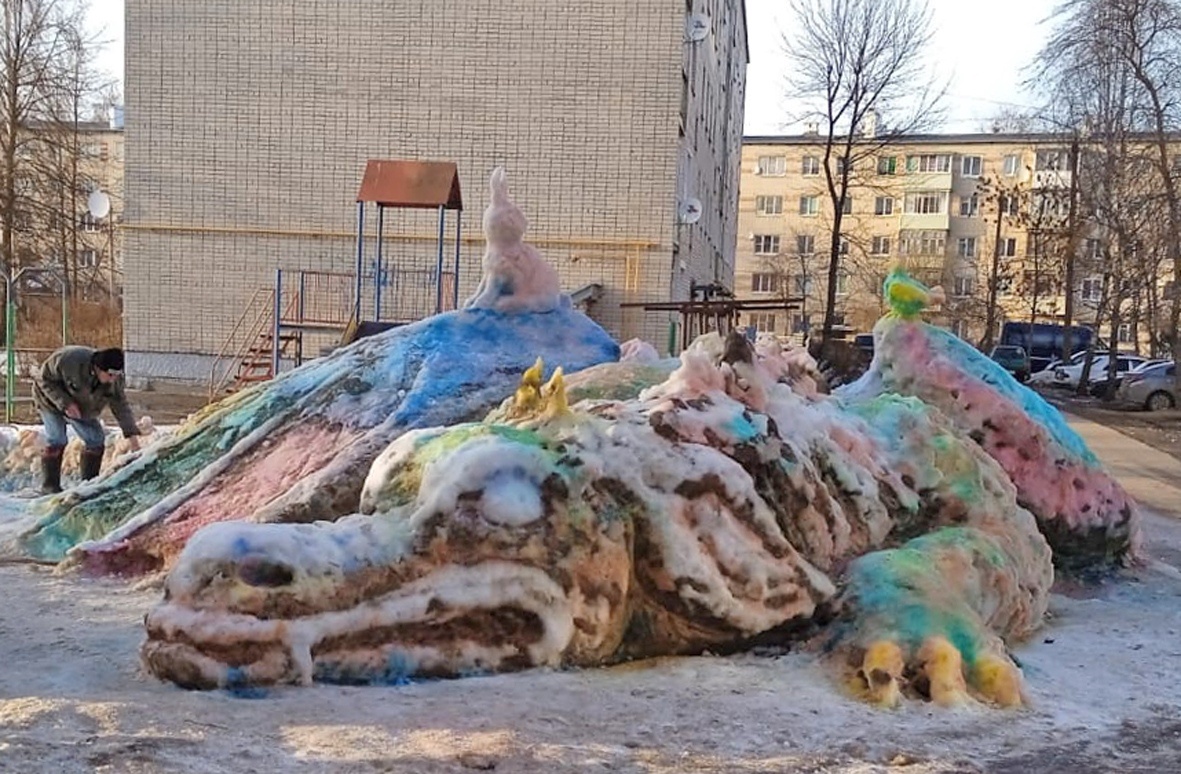 В Галиче самым обычным будничным днем, в самом обычном дворе появился необыкновенный гость. Огромный, снежный, крылатый дракон прилег и задремал рядом с домом номер 24 на улице Колхозной.