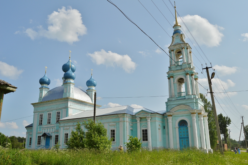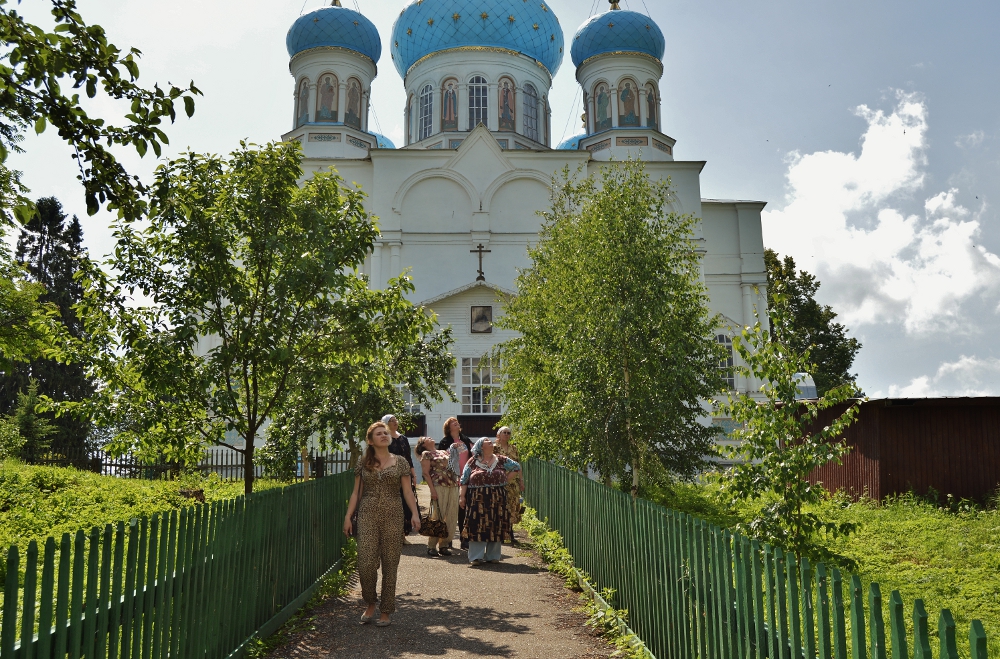 Была в этой поездке еще удивительная встреча с храмом в селе Введенье. Настоящая жемчужина Костромской земли, сейчас он восстанавливается стараниями, трудами и молитвами прихожан во главе со своим пастырем – отцом Варфоломеем. Бело-бирюзовый красавец храм на высоком берегу реки, петляющей среди лугов, видно издалека - гордый, стройный, вечерами подсвечиваемый со всех четырех сторон лучами прожекторов, он словно парит в небе…