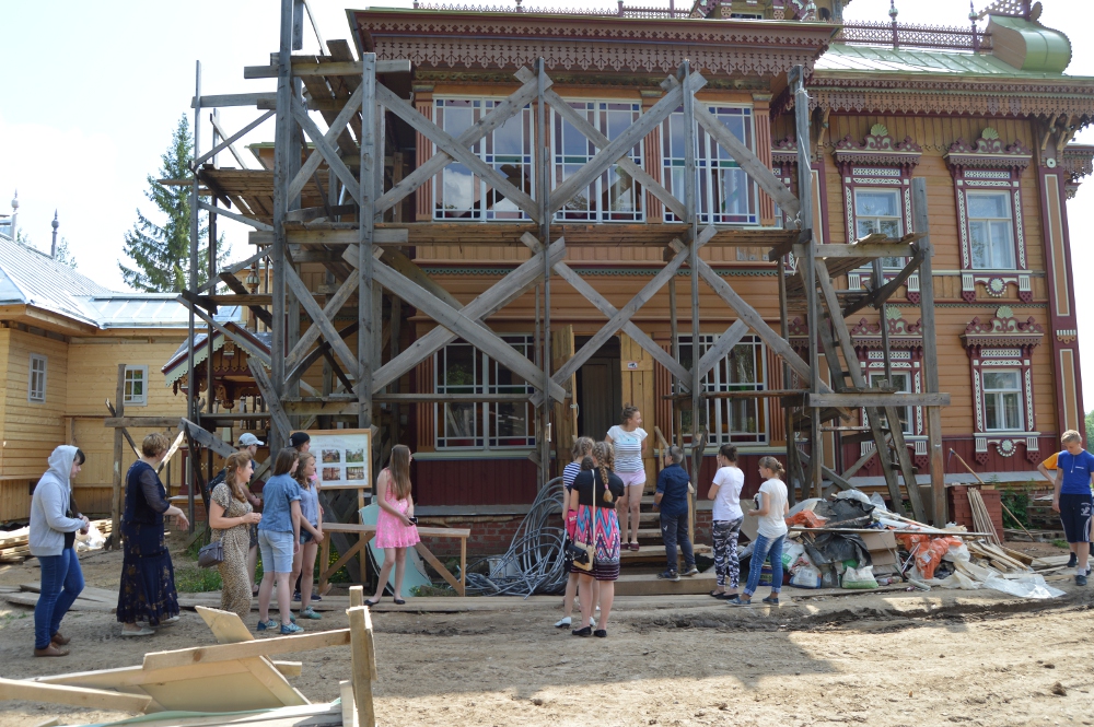 Лучше один раз увидеть, чем сто раз услышать – один из главных туристических постулатов, поэтому поездка по историческим местам была запланирована программой обучения юных экскурсоводов с самого открытия бюро. И вот, что называется, совместив приятное с полезным, ребята привезли из поездки незабываемые впечатления и массу полезных советов от своих старших коллег – опытных галичских краеведов. Сотня асфальтовых верст да километров тридцать по гравийке. Жара, пыль, ухабы, докучливые слепни, налетевшие во время остановки… И вдруг за очередным поворотом – сказочной красоты терем! Если б не ехали в такую даль именно ради него, - пожалуй, и не поняли бы сразу: то ли мираж из тягучего и липкого воздуха, заваренного палящими лучами в сахарный сироп, то ли свалила духота в короткий сон, что улетучится, едва автобус тряхнет на очередном ухабе. Но нет – не мираж и не сон – сказка, но настоящая, созданная не по волшебному велению, а руками мастеров.