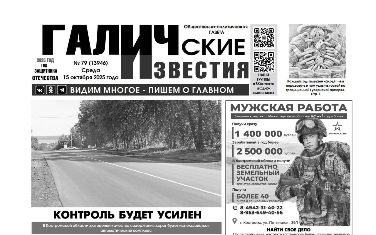 15 октября 2025 года вышел № 79 газеты «Галичские известия»