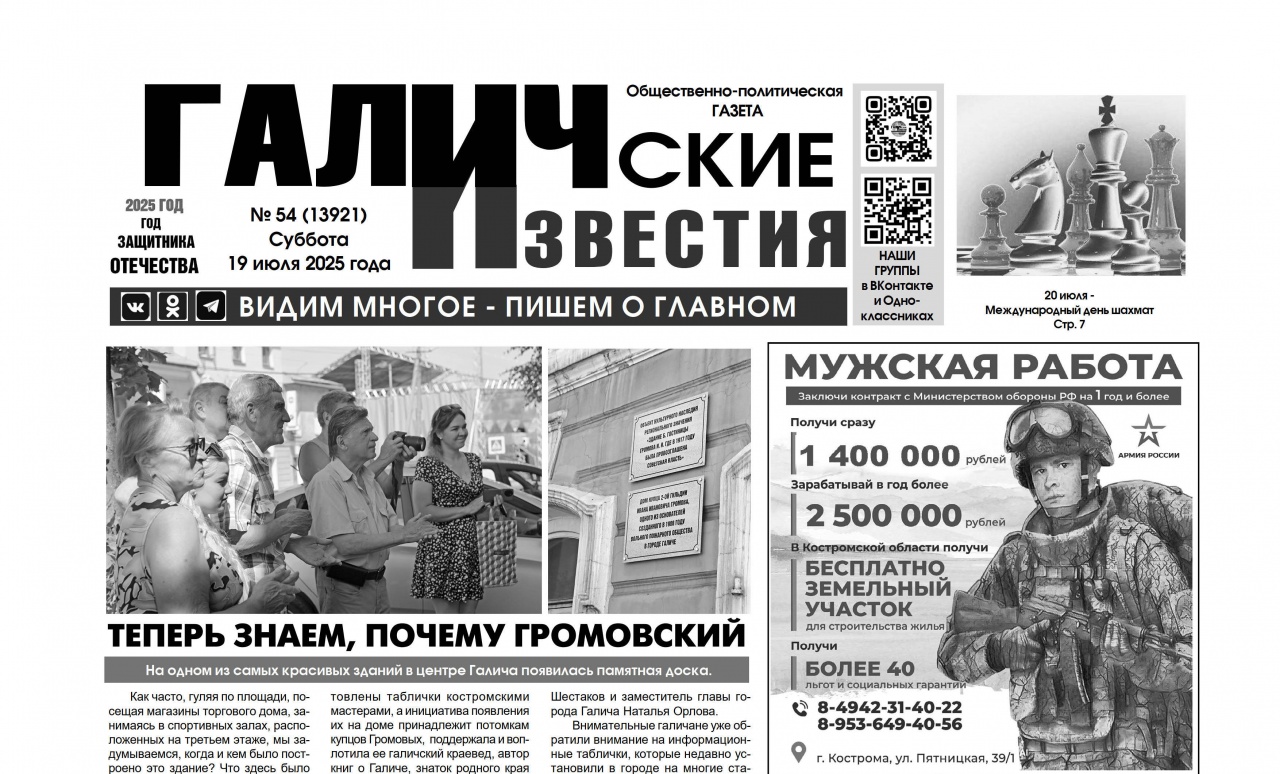 19 июля 2025 года вышел №54 газеты «Галичские известия»