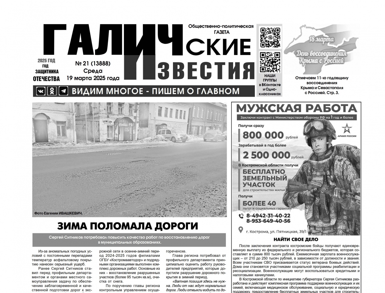 19 марта 2025 года вышел №21 газеты "Галичские известия"