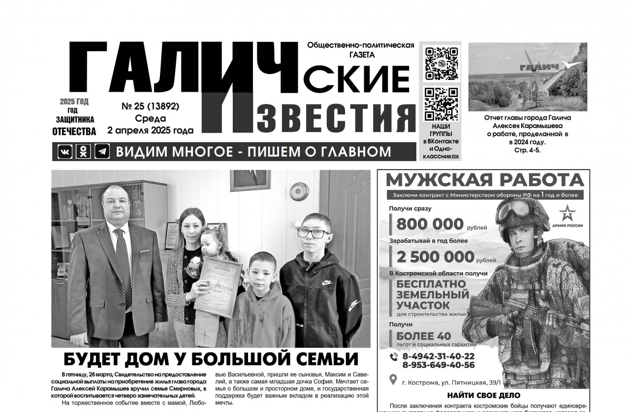 2 апреля 2025 года вышел №25 газеты «Галичские известия»