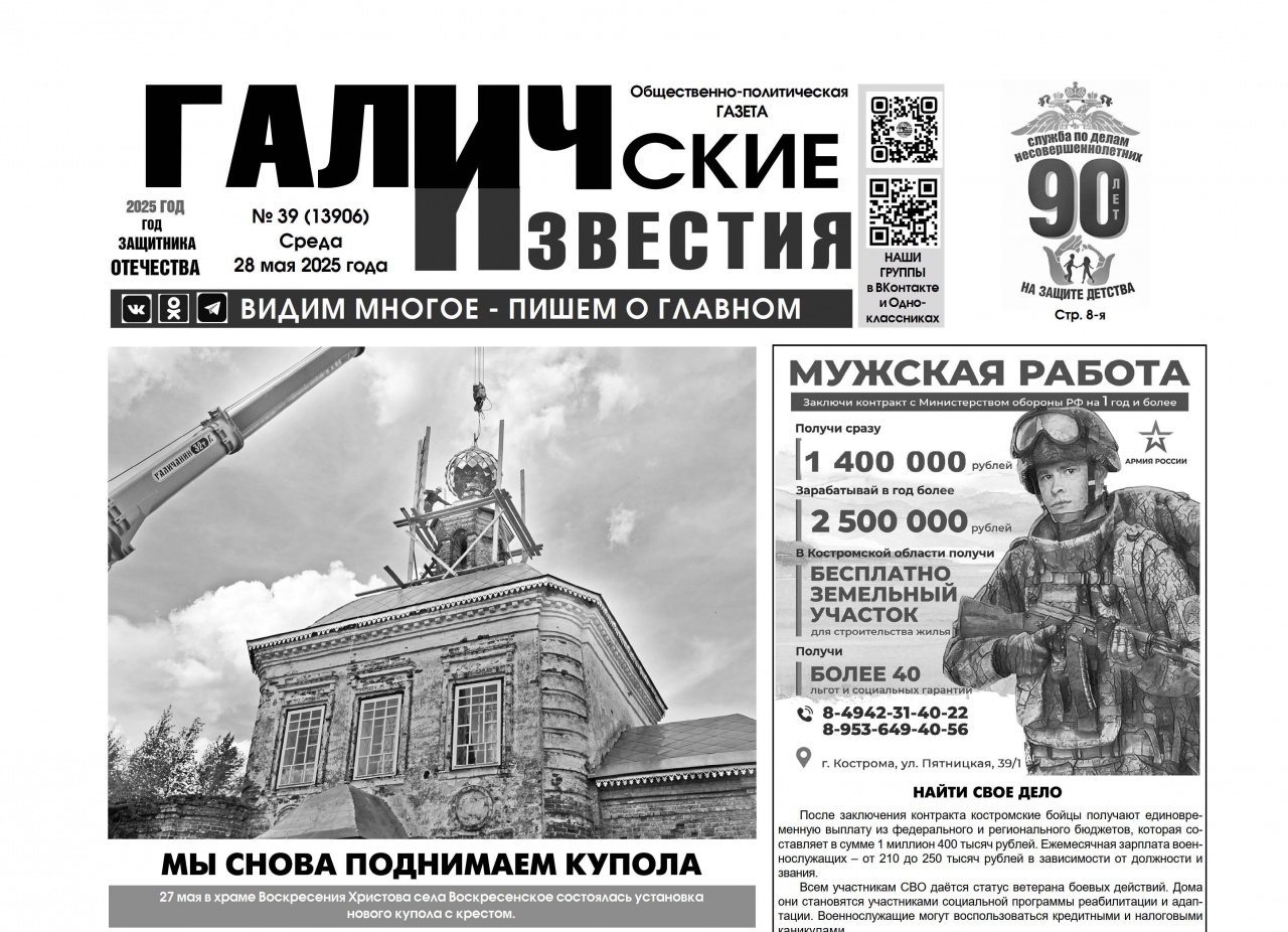 28 мая 2025 года вышел №39 газеты «Галичские известия»