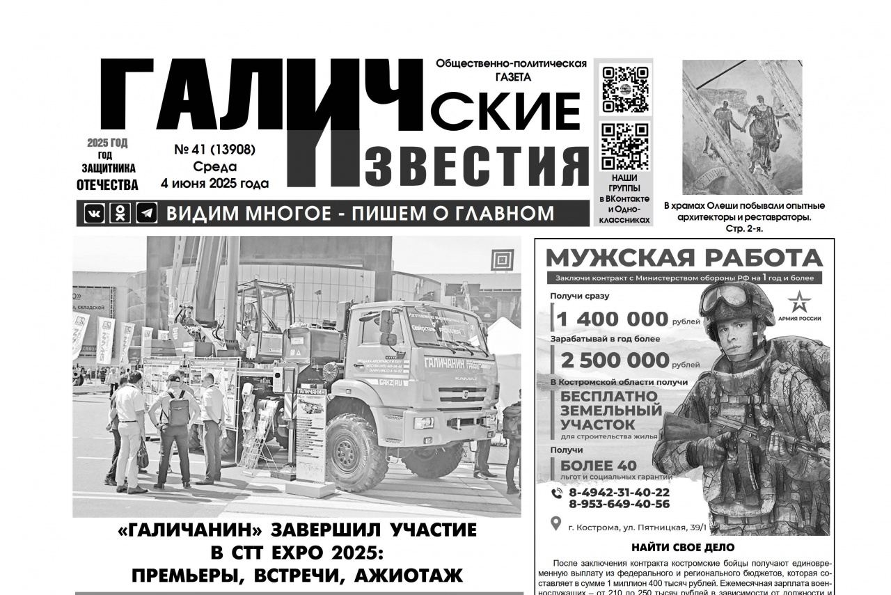 4 июня 2025 года вышел №41 газеты «Галичские известия»