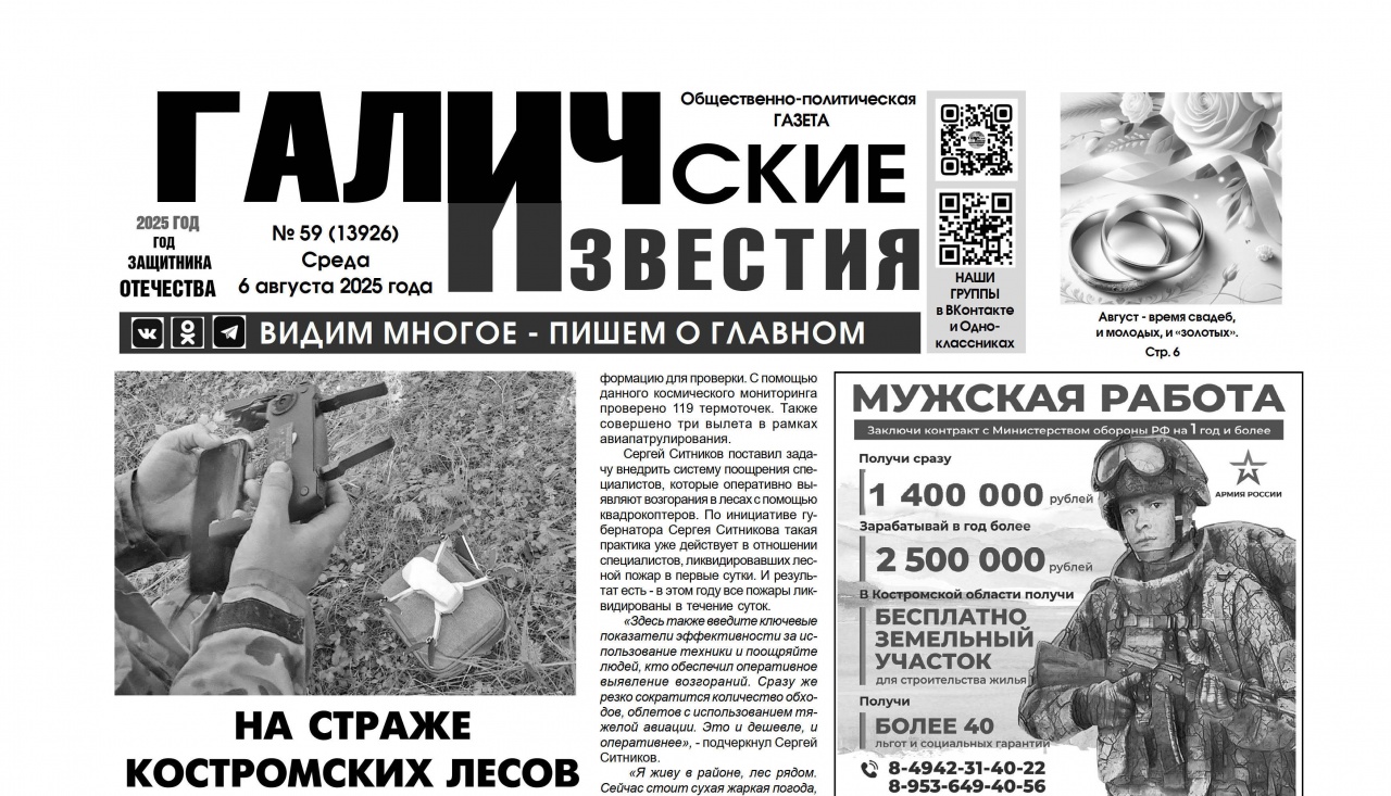 6 августа 2025 года вышел №59 газеты «Галичские известия»