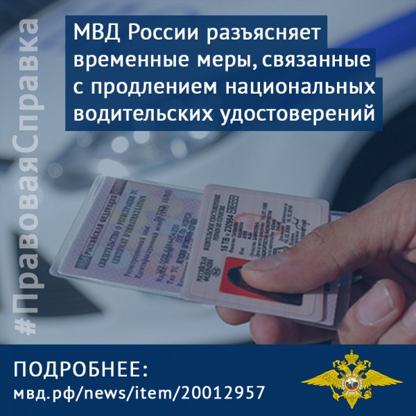 МВД России разъясняет временные меры, связанные с продлением национальных водительских удостоверений.
