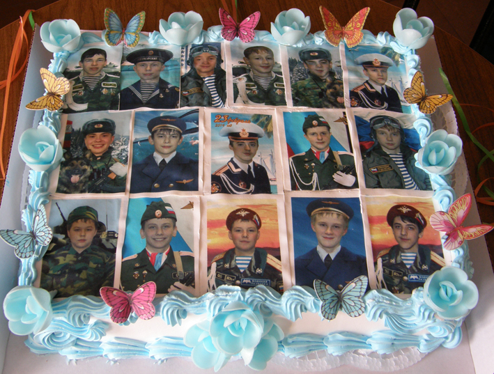 Сколько поздравляющих — столько и подарков. Наших мужчин мы все поздравили по-разному. Среди многочисленных подарков, заказываемых, например, у нас в «Издательском доме», лидировали фотомонтажи на кружки, пластиковые и керамические, фоторамки и футболки с надписями, отражающими и пожелания, и мужскую сущность, и место службы, и признания в любви. Особо массово подошли к этому дню школьницы: магниты, открытки, шутливые фото шли у девчат «на ура». Среди них особо отличились лицеистки одного из восьмых классов — они заказали мальчишкам, во-первых, пейнтболл, а во-вторых, торт, но не простой, а украшенный съедобными фотопортретами одноклассников в военной форме. Сюрприз удался!