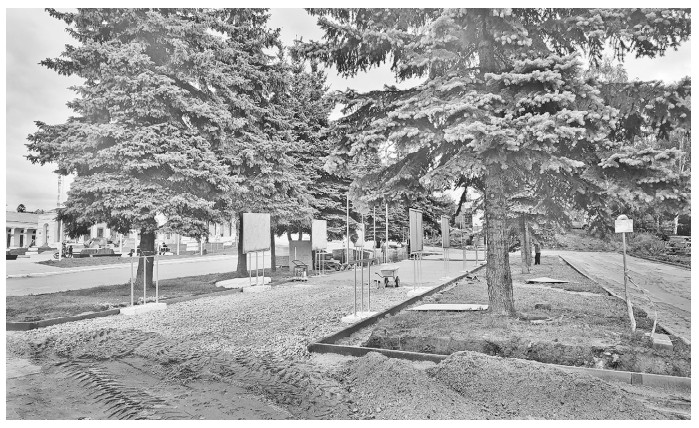 Костромские подрядчики сняли асфальтовое покрытие с дорожек и с тротуара, выровняли территорию, подготовили дорожки под укладку тротуарной плитки.