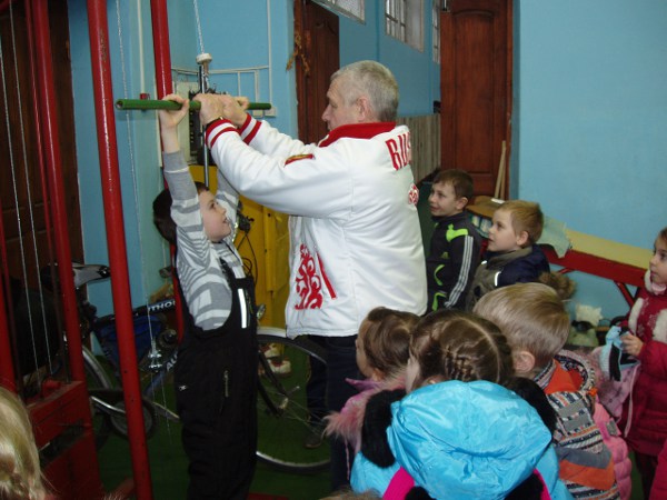 …Нужны ли сегодня России богатыри, то есть храбрые вожди и воины, способные, как Илья Муромец, к бескорыстной и жертвенной защите Родины? Вопрос этот – не праздный. Педагоги и родители понимают, что своих сыновей надо воспитывать сильными духом и телом. Преодолевая препятствия, дошкольник обретает волю, смелость, твердость, выносливость, решительность.Тяжёлая атлетика — силовой вид спорта, и экскурсия воспитанников старших групп детского сада №10 в зал тяжелой атлетики ФОКа была актуальна. Главный тренер по тяжелой атлетике Владимир Александрович Храмцов радушно нас встретил. Доступно, интересно он рассказал о своем любимом виде спорта. Мы узнали, что тренировочный процесс направлен в основном на развитие мышечной силы, быстроты силовых движений и силовой выносливости.На силовых тренажерах мышцы приводят в тонус путем силового подъема некоторого количества груза. С помощью различных видов силовых тренажеров можно быстро «подкачать» те или иные мышцы. Воспитанники тренера нам это с удовольствием продемонстрировали. У ребятишек «загорелись» глаза, всем хотелось попробовать. Такая возможность была предоставлена на тренажере для рук. На деле оказалось, что это совсем не просто, и надо много заниматься, чтобы руки стали такими же сильными, как у тренера и его спортсменов.Воспитанники Владимира Александровича показали упражнения для разных групп мышц и свои успехи в поднимании штанги (рывок и толчок). Отрадно было узнать в этих хрупких на первый взгляд, но уже таких сильных юных спортсменах, выпускников нашего детского сада.
