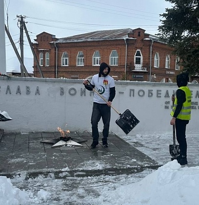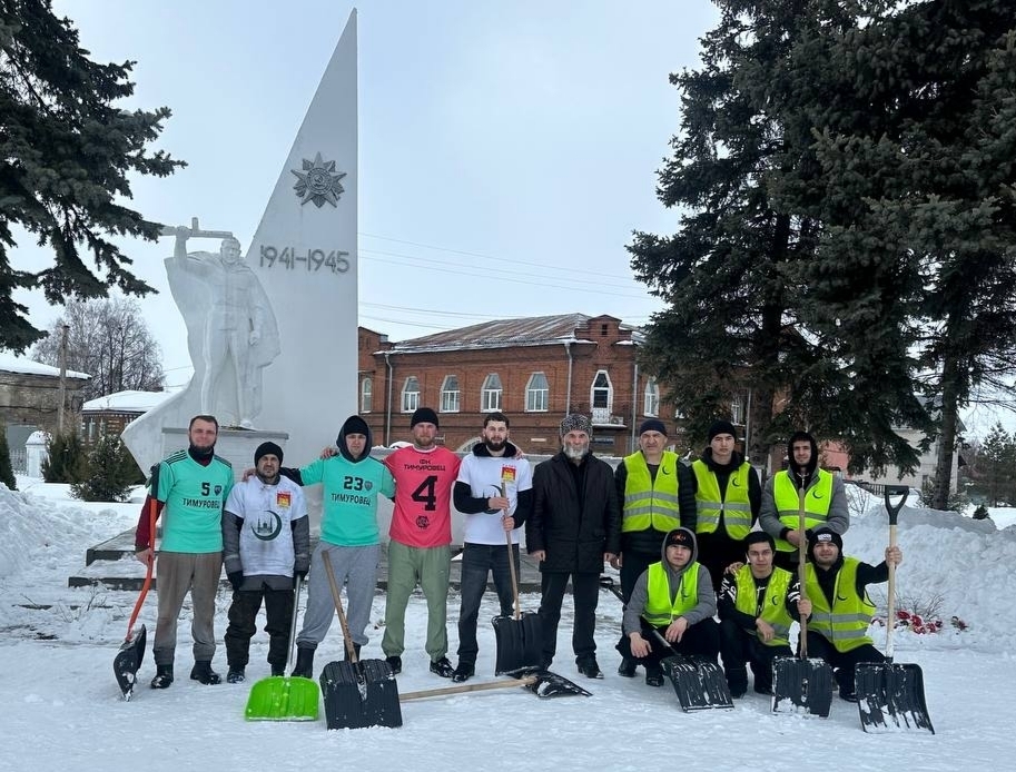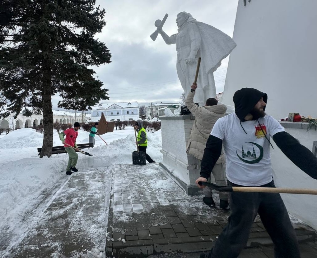 Ребята из «Тимуровской команды», футболисты ФК «Тимуровец» и молодежь из Костромы (Волонтерское движение «Ансары» (при МРО г. Костромы)) и Ярославля, при поддержке администрации города совместными усилиями очистили от снега территорию у мемориала Воину-победителю с Вечным огнем и дорожки и лавочки в сквере в центре города.