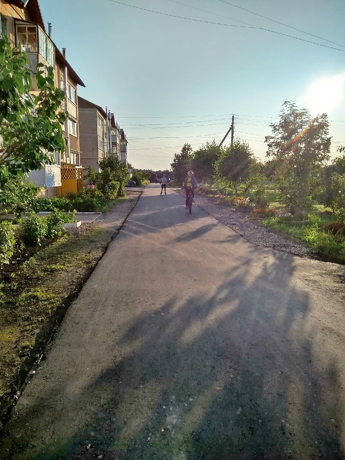 За несколько августовских дней двор преобразился до неузнаваемости. Вокруг домов пролегли ровные асфальтовые дорожки, с подсыпанными щебнем краями. У домов появились просторные асфальтовые карманы для стоянки автомобилей.